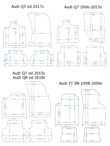 W ofercie został umieszczony szkic z wymiarami oferowanych dywaników zaokrąglonymi do pełnych cm. Uprzejmie prosimy o zapoznanie się z nim oraz sprawdzenie czy oferowana usługa wykonania dywaników, o wskazanych wymiarach, zaspokaja Państwa indywidualne oczekiwania.I podanie do którego modelu wykonać dywaniki.