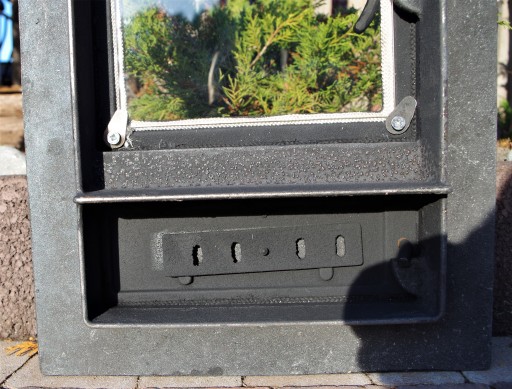 Drzwiczki żeliwne prawostronne retro z szybą żaroodporną na 800 C. Żeliwo jest patynowae farbą żaroodporną na temp 900 stopni. Drzwiczki służą do zabudowy wędzarni przydomowej, pieców chlebowych, kominków itp.