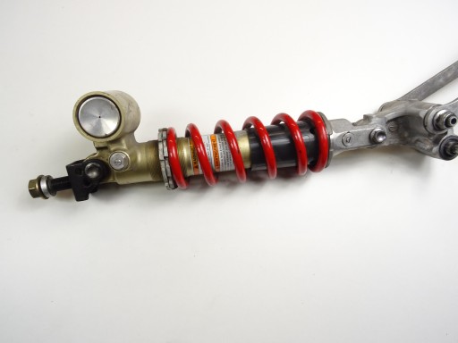 Przedmiotem aukcji jest tylny amortyzator z mocowaniem do Kawasaki ZX10R z 2006 roku.