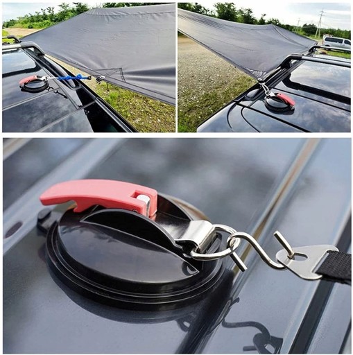 Klej: przyssawka moe przymocowa prawie wszystko. Nie martw si ju, e adunki nie s bezpiecznie przymocowane. Moesz uy przyssawki do rozstawiania namiotów i plandek w samochodach i ciarówkach na kemping.