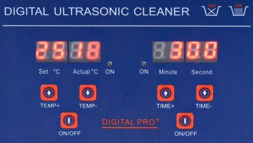 【CYFROWY PANEL STEROWANIA】 - Ustawienie czasu pracy: 0-30 minut. Maszyna ultradźwiękowa do czyszczenia biżuterii posiada cyfrowy panel sterowania z regulowanym timerem. Ekran LED został zaprojektowany tak, aby pokazać ustawiony czas pracy i odliczanie, idealny do precyzyjnej kontroli czasu prania.