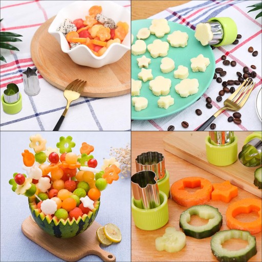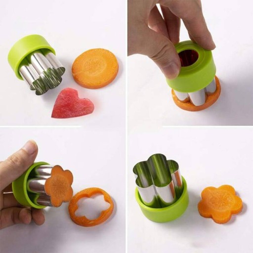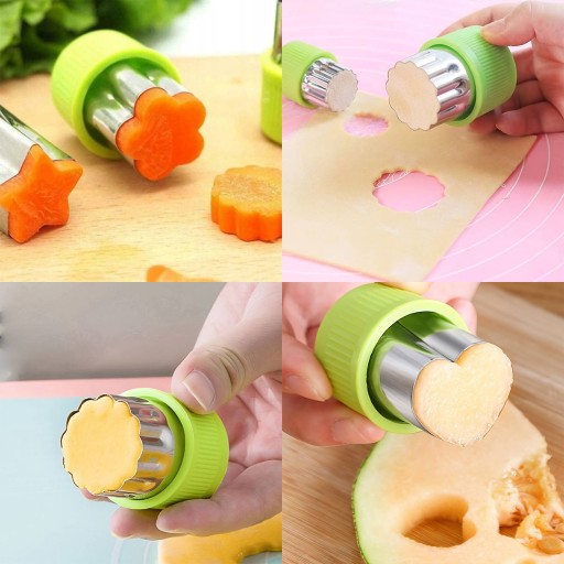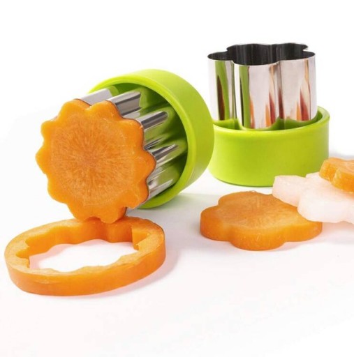 Każda z foremek umożliwia wygodne wykrawanie różnych typów warzyw i owoców w najróżniejszych kształtach.