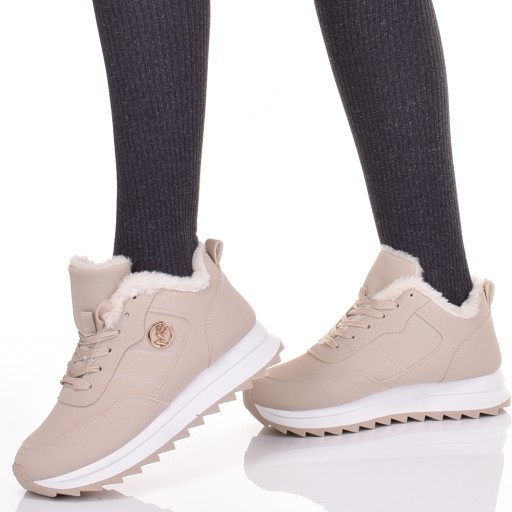 СНЕЖНЫЕ БОТИНКИ ЖЕНСКИЕ УТЕПЛЕННЫЕ, БЕЖЕВЫЕ, МОДНЫЕ