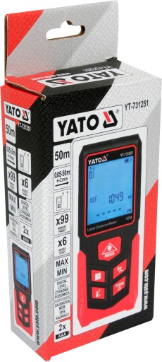 Dalmierz laserowy YATO do szybkich i precyzyjnych pomiarów odległości w zakresie od 0,05 do 50 metrów.