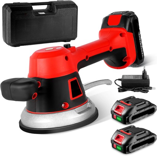 - Wibrator do płytek wyposażony jest w 2 akumulatory litowe 2000 mAh, każdy z nich można w pełni naładować w ciągu 2 godzin i można go używać zamiennie.