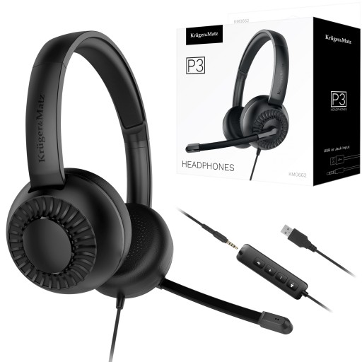 Słuchawki Kruger&Matz P3 z łatwością dostosują się do Twoich potrzeb. Korzystając ze złącza Jack 3,5 podłączysz je bezpośrednio do komputera czy telefonu. W zestawie masz także przejściówkę USB z panelem sterowania, który ułatwia komfortowe zarządzanie najważniejszymi funkcjami słuchawek.
