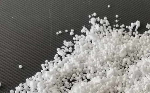 Regranulat z przemiału styropianowego i styrodurowego, bez zanieczyszczeń. Jest zapakowany w worek i pudełko kartonowe.