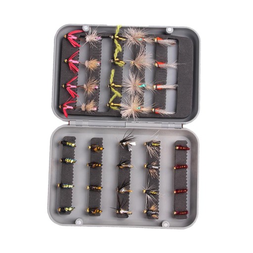 40 sztuk zestaw much wędkarskich pstrąg łosoś muchy haczyk różne owady przynęta w/pudełko