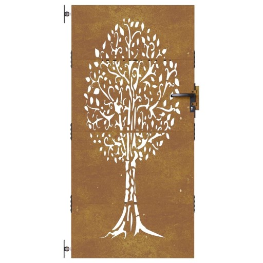 vidaXL Furtka ogrodowa, 85x200 cm, stal kortenowska, motyw drzewa