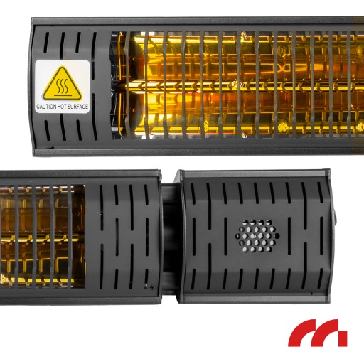 Dzięki wysokiemu stopniowi ochrony IP55, możesz cieszyć się przytulnym ciepłem na tarasie nawet podczas chłodnych wieczorów. Promiennik jest bezpieczny do użytku zarówno w pomieszczeniach, jak i na zewnątrz (pod zadaszeniem) co sprawia, że doskonale sprawdzi się na balkonie, tarasie czy w ogródku restauracyjnym
