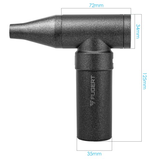 Dmuchawa posiada dużą moc, silnik rozpędza się aż do 100 000 obrotów.
