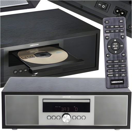 Ten system audio firmy MEDION wnosi muzykę do każdego pomieszczenia. Dzięki ponadczasowej konstrukcji obudowy w eleganckim stylu retro i frontowi ze stali nierdzewnej natychmiast przyciąga wzrok i zapewnia mocny dźwięk każdego dnia. System audio imponuje przede wszystkim dużą elastycznością. Możesz cieszyć się ulubionymi stacjami radiowymi za pośrednictwem klasycznego odbioru FM lub nowoczesnego odbioru DAB+. Możesz słuchać swojej kolekcji muzycznej z płyt CD audio i MP3 za pośrednictwem zintegrowanego odtwarzacza CD. A dzięki połączeniu Bluetooth możesz wygodnie odtwarzać treści bezpośrednio ze smartfona lub tabletu. Możesz miksować mocny dźwięk głośników stereo zgodnie ze swoimi upodobaniami, korzystając z wybieralnych ustawień wstępnych i regulować tony niskie i wysokie za pomocą dołączonego pilota. Dzięki temu Twoja ulubiona muzyka brzmi dokładnie tak, jak powinna brzmieć od rana do wieczora.