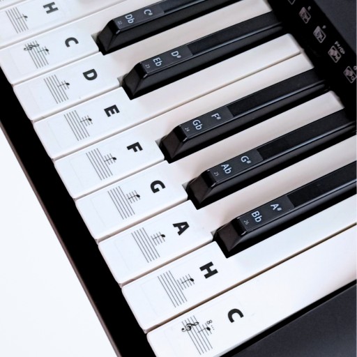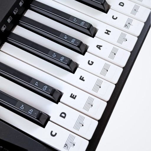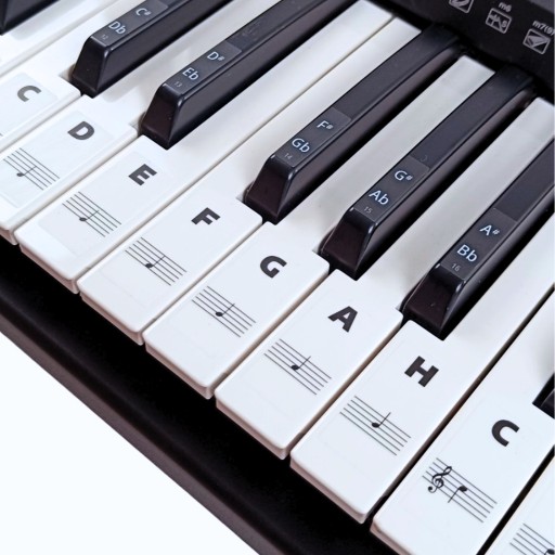 Edukacyjne naklejki ułatwiające naukę gry na keyboardzie, pianinie, fortepianie