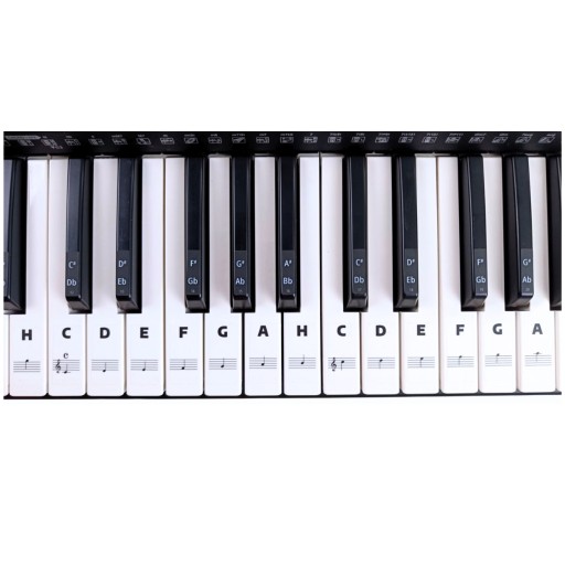 Muzyczne naklejki edukacyjne, nuty na klawisze to produkt ułatwiający naukę gry wszystkim początkującym jak i również zaawansowanym uczniom. Zastosowanie dla instrumentów klawiszowych takich jak keyboard, pianino, fortepian. Z powodzeniem można również używać naszych naklejek na instrumentach takich jak organy oraz akordeon.