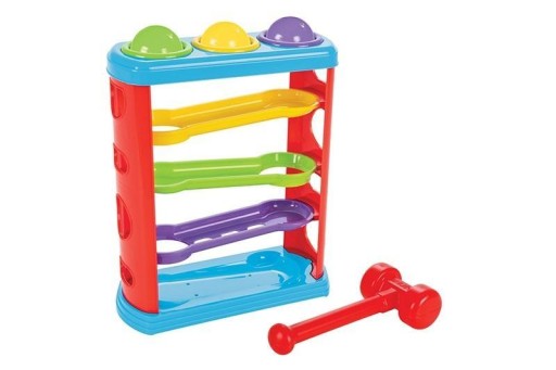 W zestawie: kolorowa zjeżdżalnia do piłeczek, 3 piłeczki, młotek, wym. Zjeżdżalni: 24 x 31 x 10 cm., Wym. Opakowania: 24,5 x 29 x 10,5 cm., 12m+