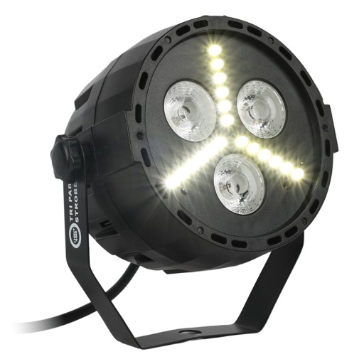 LIGHT4ME TRI PAR STROBE reflektor par stroboskop oświetlenie imprezowe efekt świetlny LED RGB+W