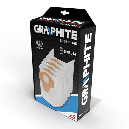 Worki do odkurzacza 59G614, 5 sztuk 59G614-145 marki GRAPHITE to praktyczne worki z mikrofibry w zestawie 5 sztuk, przeznaczone do odkurzacza warsztatowego 59G614 z silnikiem o mocy 1200 W, do szybkiego i skutecznego usuwania urobku po pracach warsztatowych. Worki charakteryzują się trwałością oraz łatwością w montażu. Doskonale sprawdzą się w wielu sytuacjach, gdzie wymagana jest wysoka trwałość produktu.