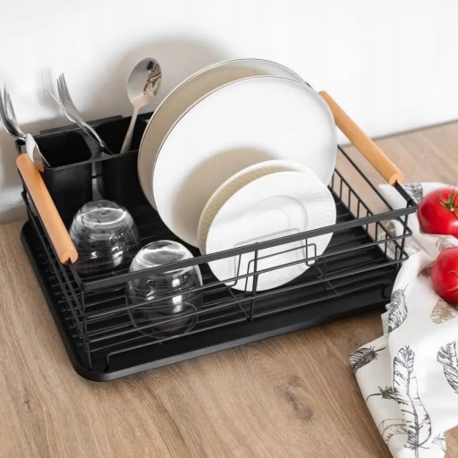 Stylowy wygląd: Czarny kolor nadaje suszarce nowoczesny i elegancki wygląd, który doskonale komponuje się z różnymi stylami kuchni, od nowoczesnych po klasyczne.