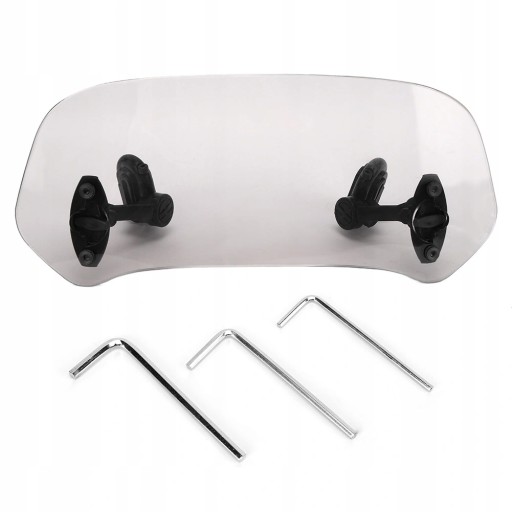 Prosta instalacja z kompletnym zestawem akcesoriów i odpowiednia dla prawie każdego motocykla z przednią szybą, po prostu przymocowaną do oryginalnej szyby.