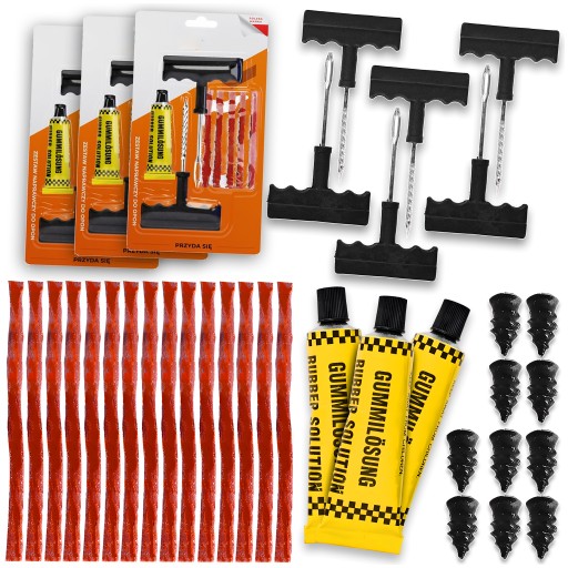 ZESTAW NAPRAWCZY DO OPON SZNUR KLEJ 15x sznur 10x wkręty SZYBKA NAPRAWA