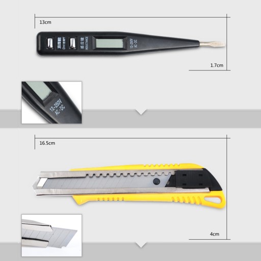 ✅W zestawie miarka, nóż uniwersalny, śrubokręt, cyfrowy tester elektryczny, szczypce uniwersalne, taśma PCV, młotek i walizka do przedmuchu