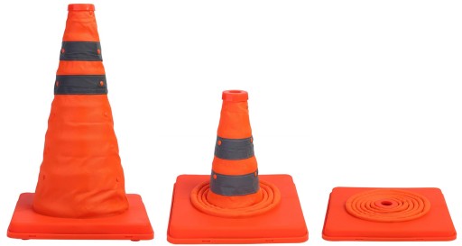 - Składana Konstrukcja: Pachołek można złożyć, co ułatwia jego przechowywanie i transport. Po złożeniu zajmuje bardzo mało miejsca.