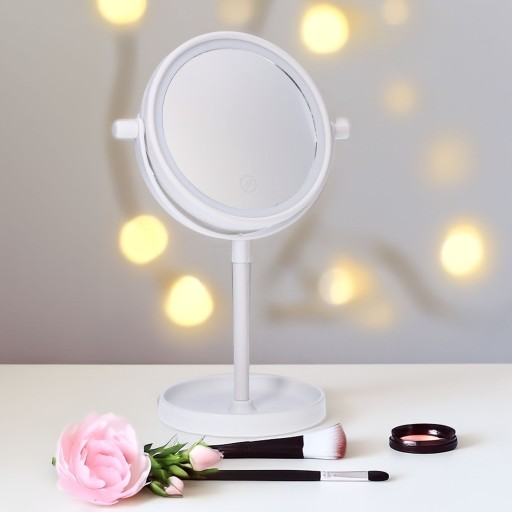 Dzięki jasnym lampkom LED umieszczonym na całym obwodzie lustra, idealnie oświetlisz swoją twarz podczas makijażu, zapewniając równomierne i naturalne światło.
