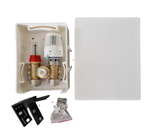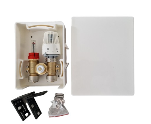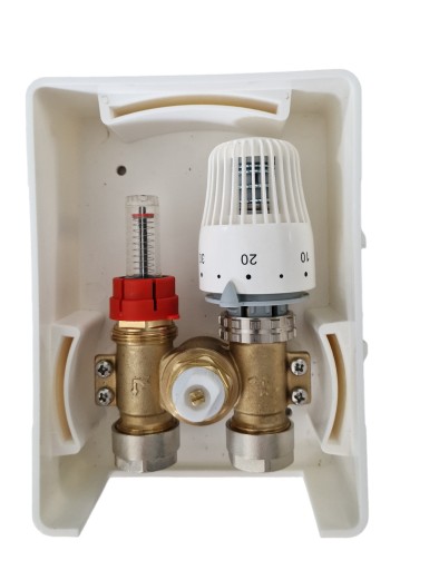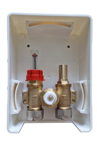 Kasetowy zawór z ograniczeniem temperatury do ogrzewania podłogowego.Montowany w instalacji na powrocie w estetycznej skrzynce z frontem plastikowym zarówno w ścianie jaki i w stelażach oraz płytach GK.