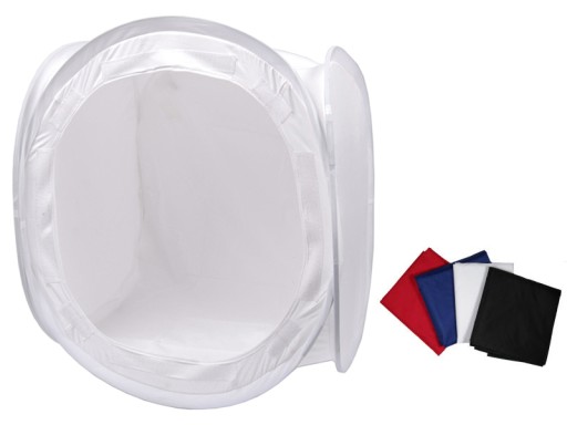 Samo-rozkładający się namiot bezcieniowy w kształcie sześcianu o bokach 80 cm to najprostszy i niedrogi sposób na uzyskanie zdjęć produktów o jakości profesjonalnych studyjnych fotografii.