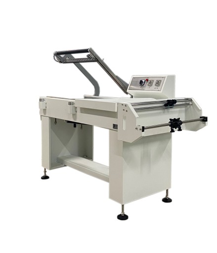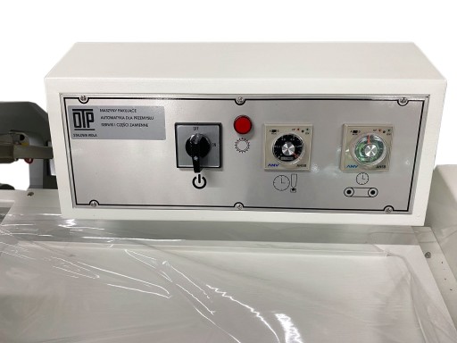 Blat roboczy urządzenia wyposażony jest w taśmociąg, który po zgrzaniu samoczynnie przesuwa otoczony folią detal ze strefy roboczej i może automatycznie przejeżdżać do tunelu obkurczającego. Dodatkowo cały ruchomy blat roboczy ma regulację wysokości względem zgrzewadeł (konieczną do dopasowania różnej wysokości produktów).