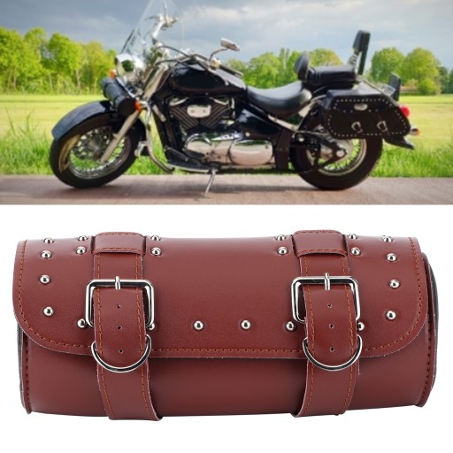 Uniwersalna torba motocyklowa PU Skórzana torba podsiodłowa Motocyklowa rolka Bagażnik Wymiana silnikaBrązowy