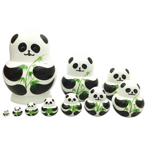 10 sztuk/zestaw Śliczna Panda Malowane Rosyjskie lalki Drewniany zestaw lalek Zagnieżdżanie lalek Rzemiosło na prezenty świąteczne