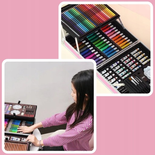 ✔️Wszechstronny Zestaw Kreatywnych Narzędzi✔️Ten zestaw zawiera absolutnie wszystko, czego potrzebuje mały artysta do wyrażania swojej kreatywności. Kredki, pisaki, pastele, farby i wiele innych narzędzi pozwoli dziecku rozwijać swoje zdolności artystyczne i rozbudzić wyobraźnię.