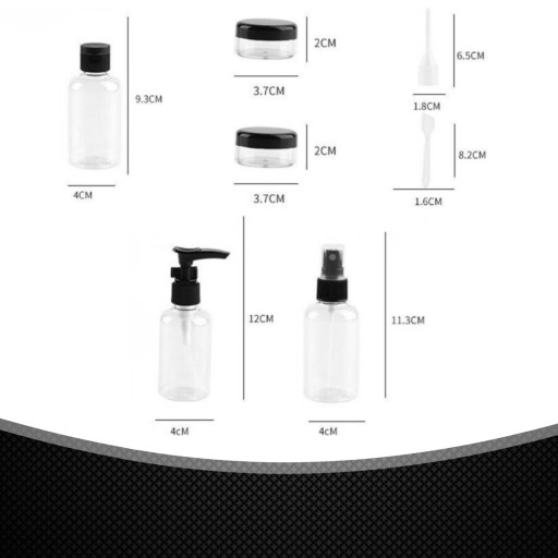Zestaw podróżnych buteleczek na kosmetyki to kompaktowe, lekkie i wielokrotnego użytku rozwiązanie na każdą podróż.