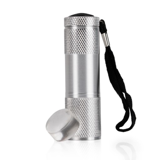 Poręczna mini latarka LED/UV do paznokci ze stemplem do stampingu. Idealna do pracy z górnymi dualformami i ozdobami.