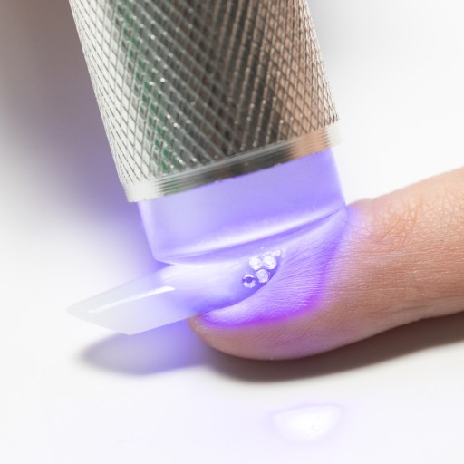 ▶️ Utwardź masę mini latarką przez 20-30s (w zależności od rodzaju masy) w obszarze skórek.