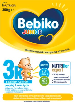 Odżywcza formuła Bebiko Junior dostarcza ważnych składników, aby wspierać prawidłowy rozwój Twojego dziecka*. Bebiko Junior pomaga pokryć zapotrzebowanie Twojego dziecka na ważne składniki odżywcze, aby wspierać jego prawidłowy rozwój na danym etapie*. Formuła Bebiko Junior 3R NUTRIflor Expert Wysoka jakość składników *Kompozycja składników dla wsparcia prawidłowego rozwoju i układu odpornościowego, w tym Unikalna kompozycja GOS/FOS ALA (omega 3)¹ niezbędny do prawidłowego rozwoju mózgu i tkanki nerwowej³ Wapń¹ i witamina D¹ niezbędne dla prawidłowego rozwoju kości i zębów Witaminy A¹, C¹ i D¹ dla prawidłowego funkcjonowania układu odpornościowego Żelazo¹ i jod¹ wspierające prawidłowy rozwój poznawczy - bez oleju palmowego - bez konserwantów i barwników¹,² - bez wzmacniaczy smaku¹,² ¹ Tak jak inne podobne produkty przeznaczone dla małych dzieci. ² Zgodnie z przepisami prawa. ³ Dla porcji 200 ml. Czy wiesz, że ... - Malutki brzuszek dziecka po 1. roku życia potrzebuje aż 6x więcej witaminy D i 4x więcej wapnia oraz żelaza, w przeliczeniu na kg masy ciała niż Ty?* Aż 70 % odporności dziecka pochodzi z brzuszka**. Wspieraj układ odpornościowy Twojego Juniora, podając mu 2 kubki Bebiko Junior 3R NUTRIflor Expert dziennie, z wysoką dawką witamin C i D. Już 2 kubki Bebiko Junior 3R NUTRIflor Expert realizują*: - 74 % dziennego zapotrzebowania na żelazo - 84 % dziennego zapotrzebowania na witaminę D - Co najmniej 67 % dziennego zapotrzebowania na wapń i jod *Zgodnie z: Normy żywienia dla populacji Polski i ich zastosowanie pod red. M. Jarosz i in., NIZP-PZH,2020. **Ok. 70 % komórek odpornościowych organizmu znajduje się w przewodzie pokarmowym.