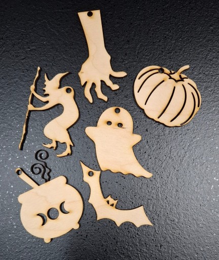 Zestaw 6 elementów dekoracyjnych na halloween do zawieszenia.