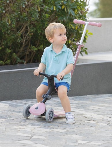 Pojazd oferuje 3 tryby: jeździk, rowerek spacerowy oraz hulajnoga.