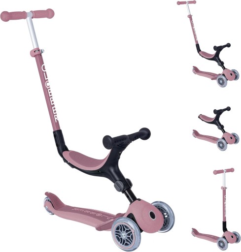 Tryby rowerka do jeżdżenia i chodzenia są przeznaczone dla małych dzieci w wieku 15-36 miesięcy, a tryb hulajnogi dla dzieci w wieku 3-7+.