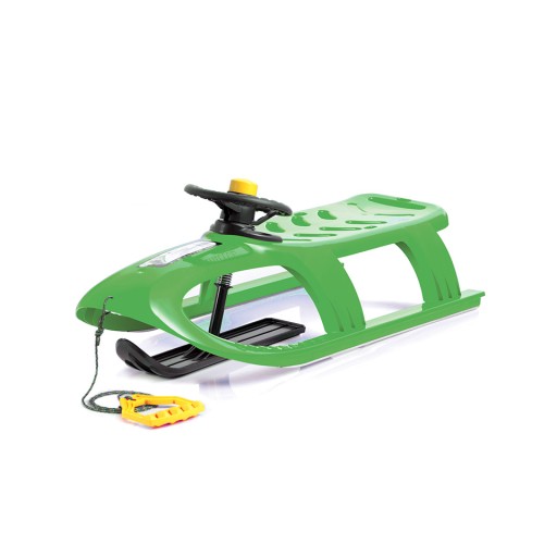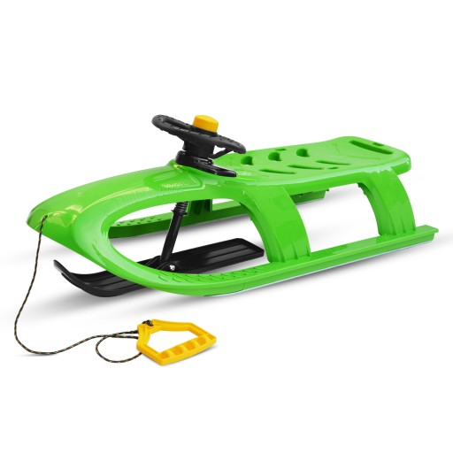 Cechy- Płoza sterująca z kierownicą- Sznurek do ciągnięcia sanek- Uchwyt do przenoszenia- Opływowy przód- Klakson- Kolor: zielony