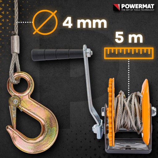 ⭐️ Linowa WCIĄGARKA Korbowa Marki POWERMAT | 454 kg | 5m / 4mm |