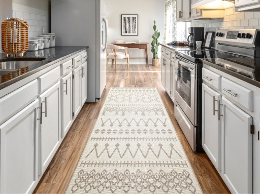 ✔️ Chodnik znajduje swoje miejsce we wnętrzu jak i na zewnątrz pomieszczeń. Jest to to produkt odporny na promienie słoneczne i warunki atmosferyczne, dlatego z powodzeniem można ułożyć go na tarasie i balkonie. Produkt idealnie wpasuje się także do kuchni, sypialni oraz przedpokoju.