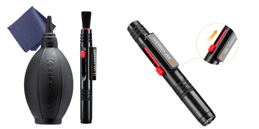 W skład zestawu K&F Concept 3w1 wchodzi również wyjątkowy pędzelek, który ułatwia usuwanie kurzu i pyłków z trudno dostępnych miejsc. Zamknięty w obudowie przypominającej pisak, stanowi idealny wybór dla osób, które cenią sobie lekkość akcesoriów video-foto oraz ich kompaktowe wymiary. Dzięki wysuwanej głowicy transport i przechowywanie pędzelka stają się jeszcze wygodniejsze. Takie rozwiązanie pozwala zachować porządek w torbie czy plecaku fotograficznym. Na drugim końcu pędzelka umieszczono specjalną dwustronną głowicę czyszczącą. Oferuje ona dwie końcówki wykonane z miękkiego zamszu – okrągłą oraz trójkątną. Głowica świetnie poradzi sobie z najbardziej uporczywymi zabrudzeniami.