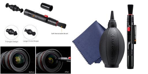 Zestaw czyszczący K&F Concept 3w1 zapewni skuteczną ochronę urządzeń, pozwalając utrzymać w doskonałej kondycji Twoje obiektywy, filtry, matryce i ekrany. W jego skład wchodzą 3 różne akcesoria. Gruszka wykonana z miękkiego, przyjemnego w dotyku silikonu, gwarantuje silny podmuch powietrza, ułatwiający usuwanie pyłków oraz kurzu. Specjalny pędzelek z wysuwaną głowicą pozwoli dotrzeć do trudno dostępnych miejsc. W jego tylnej części znajdziesz również specjalne końcówki czyszczące wykonane z miękkiego zamszu. Dopełnieniem całego zestawu jest delikatna ściereczka z mikrofibry.