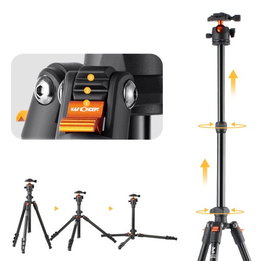 ШТАТИВ ДЛЯ КАМЕРЫ K&F CONCEPT Алюминий/Магний + ШАРОВАЯ ГОЛОВКА 3D для МАКРО