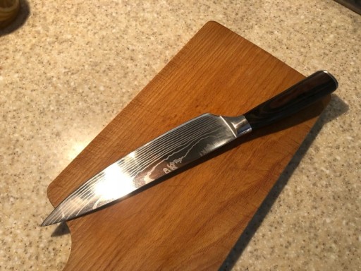 10 pięknych super ostrych noży kuchennych. Posiadają piękne wzory w stylu Damasceńskim