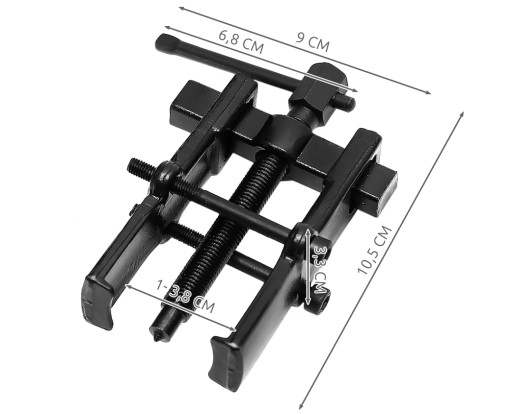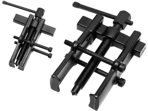 Solidny ściągacz do łożysk składa się z dwóch ramion, których zadanie polega na ściąganiu elementu ruchomego. Znajduje się tu również wkręcany element wypychający wraz z tuleją, która blokuje samoistne rozwarcie ramion wytrzymałego ściągacza do klem.