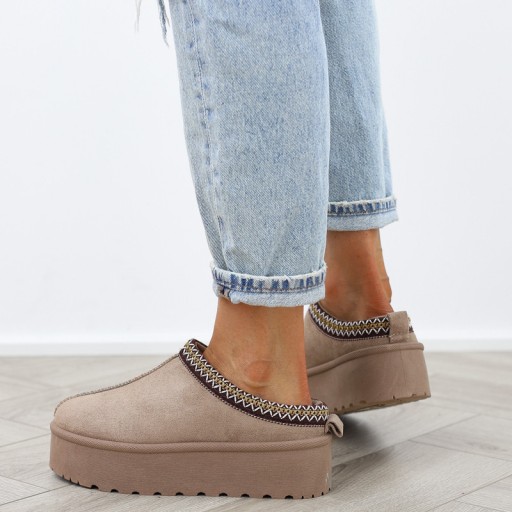 Khaki beżowe botki śniegowce damskie platforma niskie mukluki EV-507