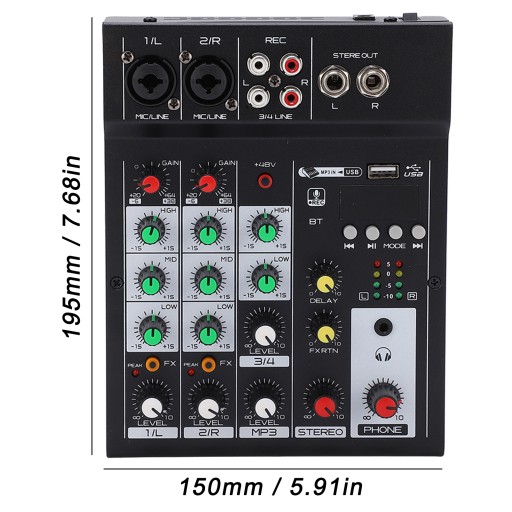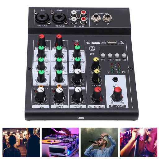 Аудиомикшер 4-канальный Bluetooth USB с эффектом реверберации для домашней студии в США